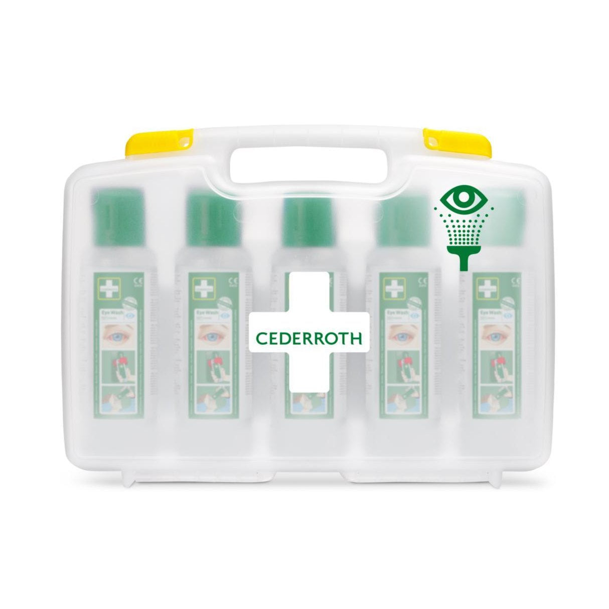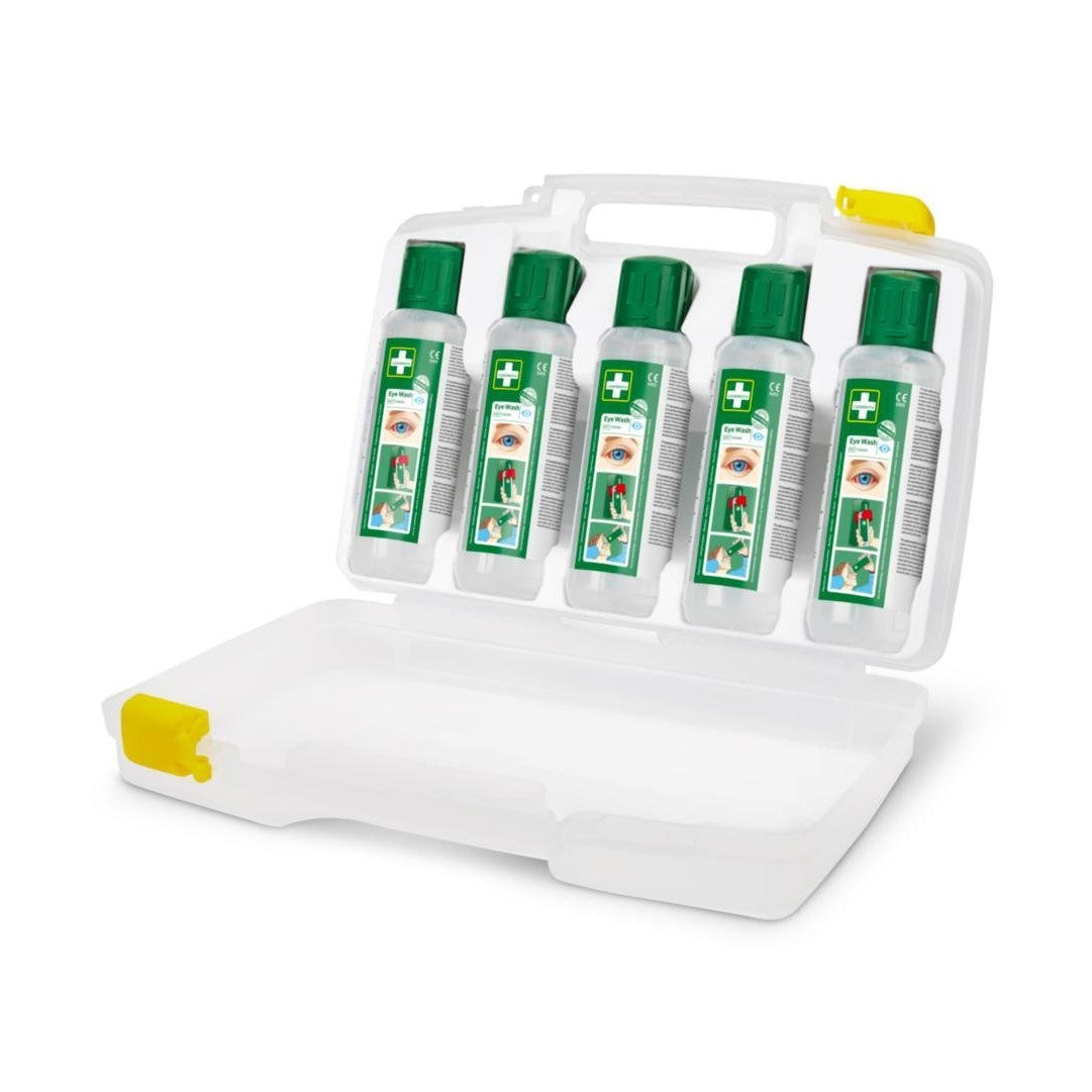 Cederroth neutraloiva silmänhuuhtelu pakissa. Kätevä pidettäväksi mukana esimerkiksi liikkuvassa työssä tai sairaalaan kuljetettaessa. Tukeva, läpinäkyvä ja kova muovipakki kahvalla. Helppo avata soljilla jotka liukuvat sivusuunnassa. Voidaan sijoittaa seinälle seinätelineella (REF 51011041). Sisältö: 5 kpl x 500 ml Cederroth neutralovaa silmänhuuhtelunestettä.