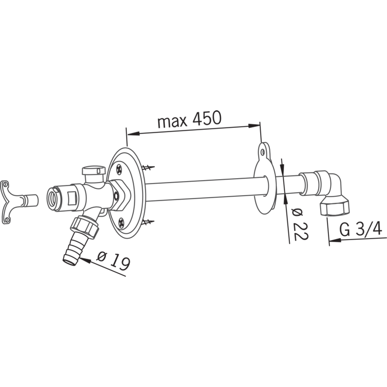 Vesipostiventtiili Oras 431420 20 L=250- 450MM [2934141]