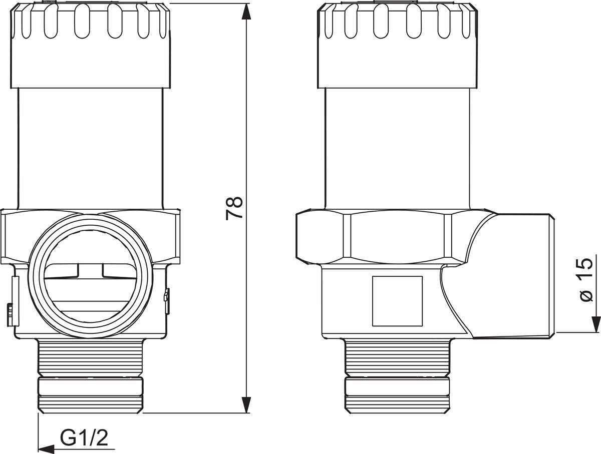 Varoventtiilien ulospuhallusputken liitospää on varustettu puserrusliittimellä. DN15 venttiilissä on 15 mm:n puserrusliitin.
