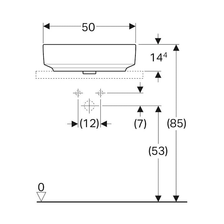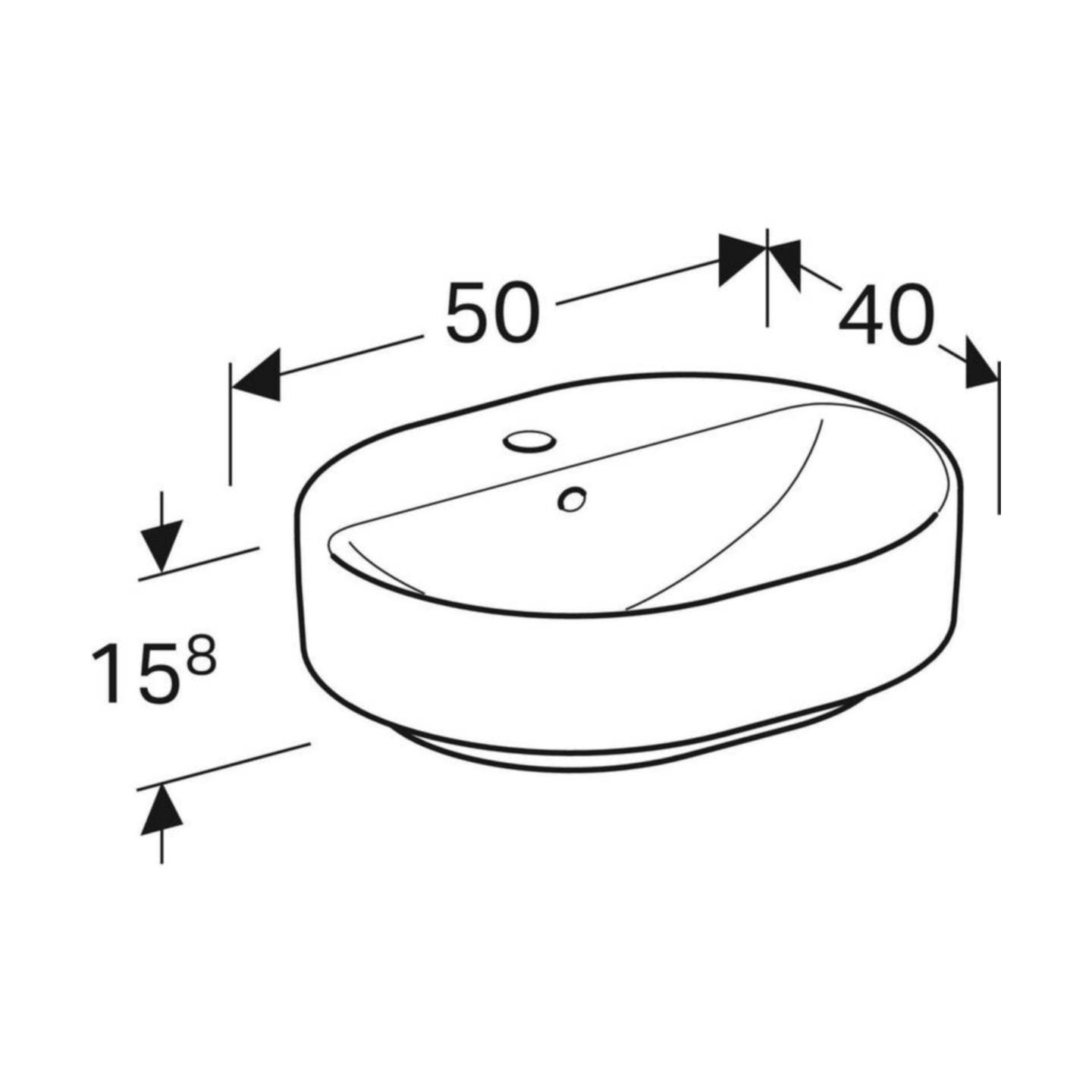 Geberit VariForm -tason päälle asennettava pesuallas, ellipsi, hanasaarekkeella