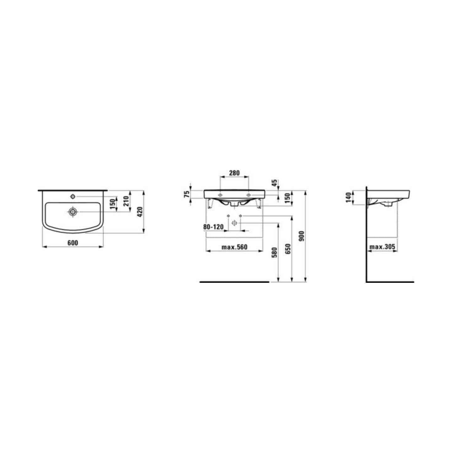 Pesuallas Laufen Kompas 60X42CM 1 Hanareikä Keskellä [5618004]