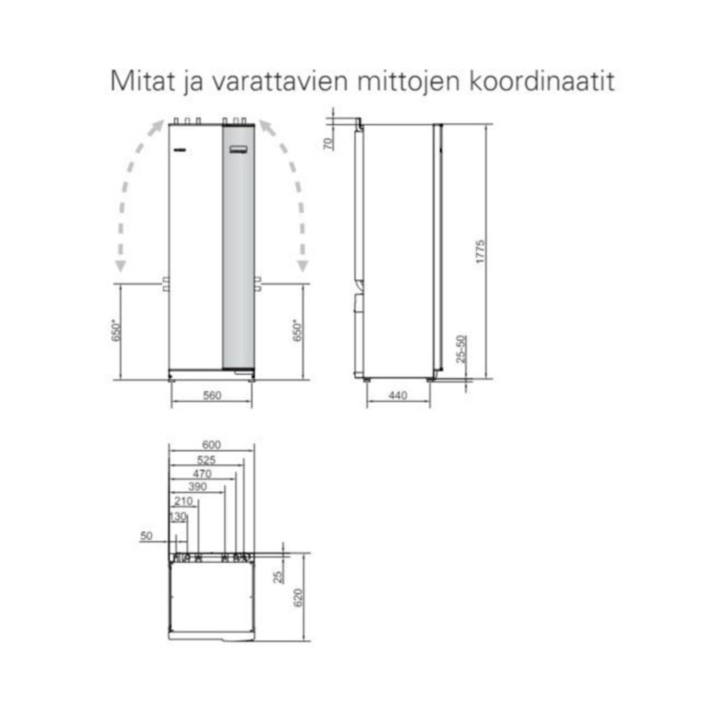 • Lämmönkeruupiirin liitosputken ulkohalkaisija: 22 mm