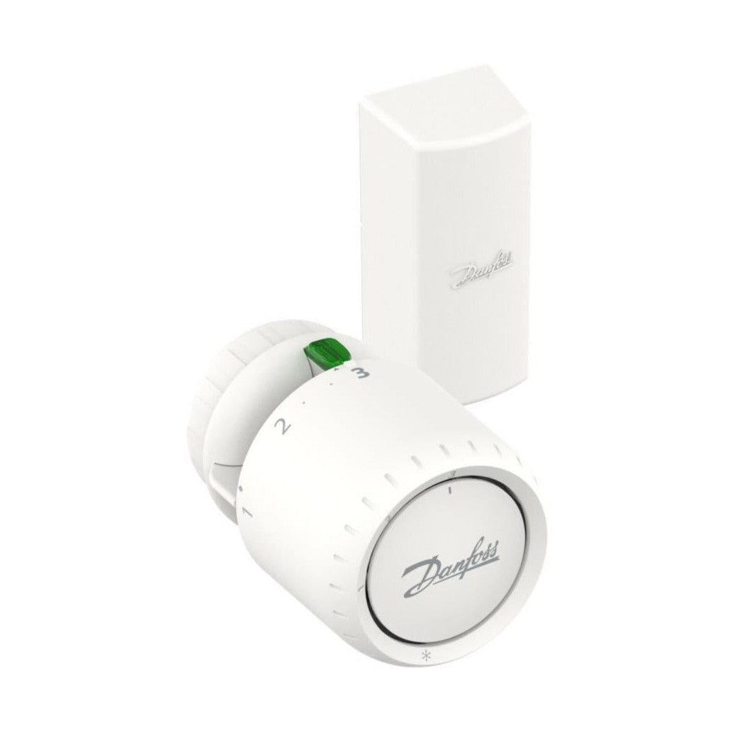 Danfoss Aveo RA patteritermostaatti, irtoanturi, klik-pikakiinnitys, tarkka säätö 0,5 °C tarkkuudella, lämpötilan muutoksiin nopeasti reagoiva kaasutäytteinen sensori, varkauden esto