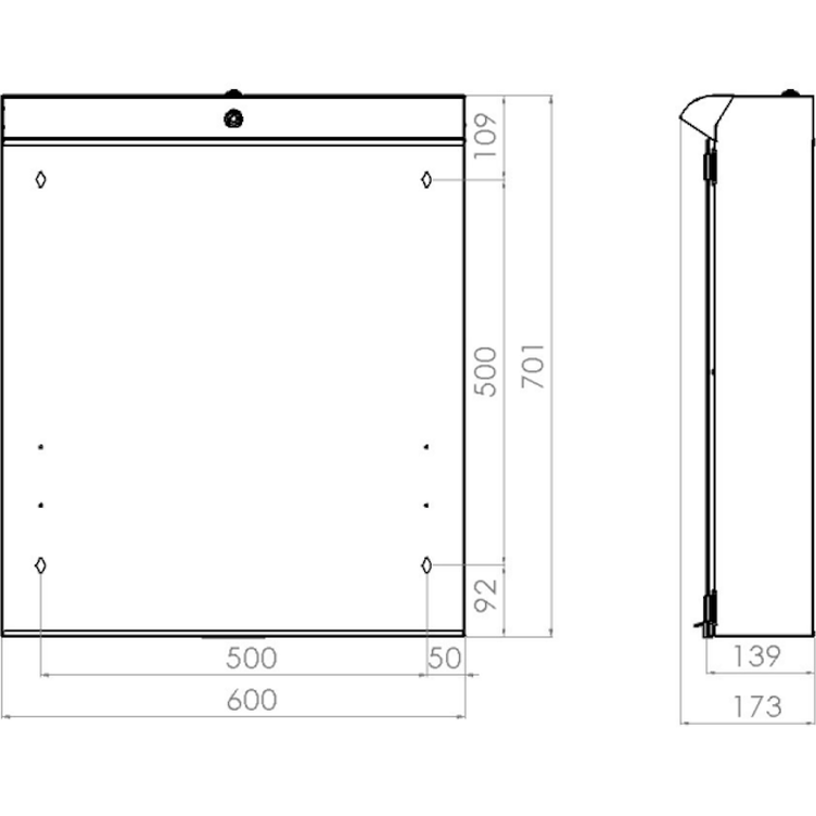 Peilikaappi V21570 Polaria LED Lumena 600 oikea VVS harmaa [6045271]