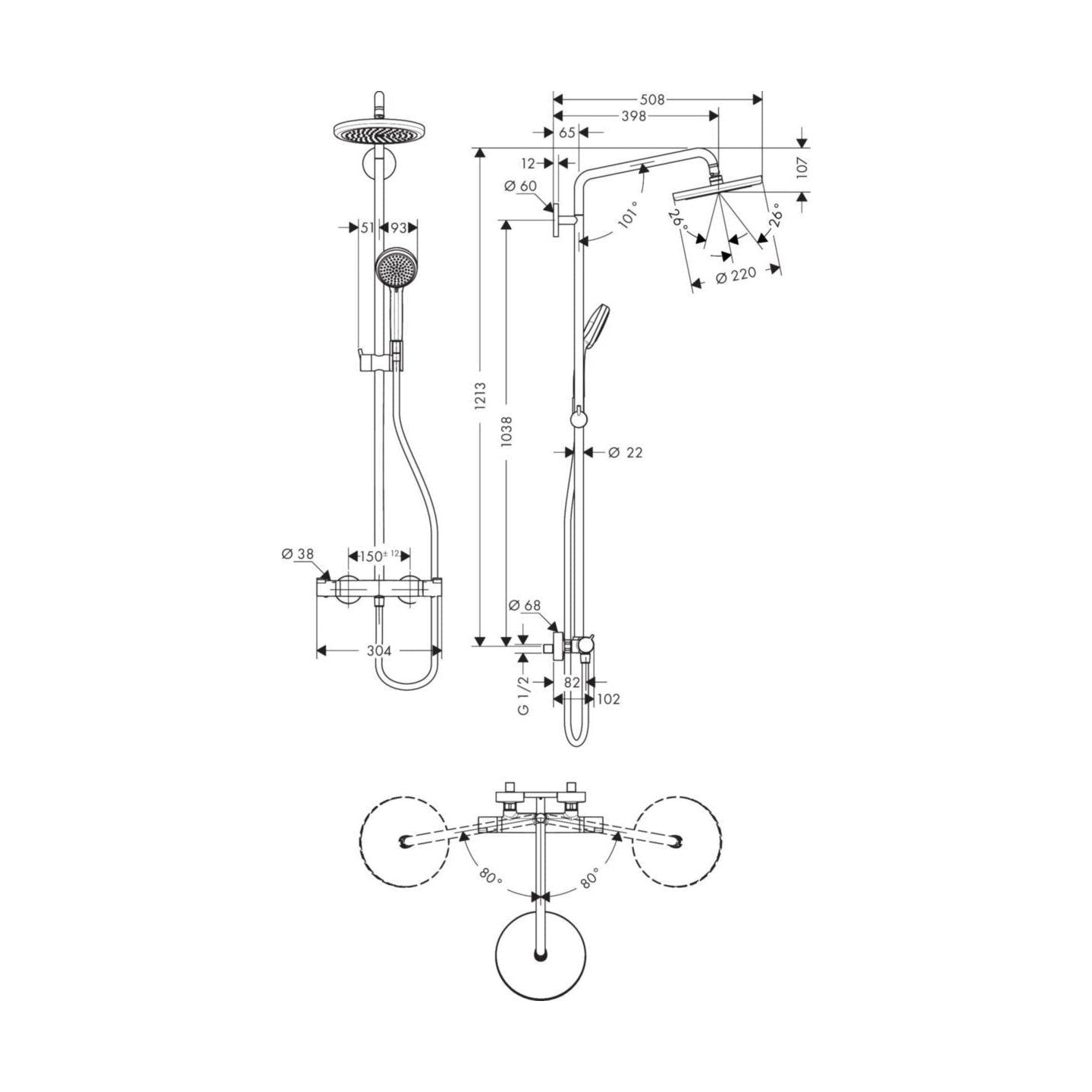 Yläsuihkuyhdistelmä Hansgrohe Croma 220 27866000 220 AIR []