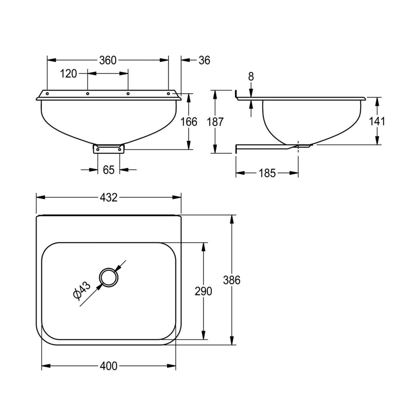 Soveltuu pienen kokonsa vuoksi myös ahtaisiin tiloihin, joissa tarvitaan hygieenistä ja lujatekoista allasta. Varusteet: ylijuoksupohjaventtiili, vesilukko, tulppa ja ketju, kannake. Altaan korkeus 140 mm. Mitat 432 x 140x 386 mm (L x K x S)