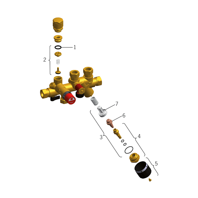 Termostaattinen ryhmäventtiili lämminvesikehittimelle.