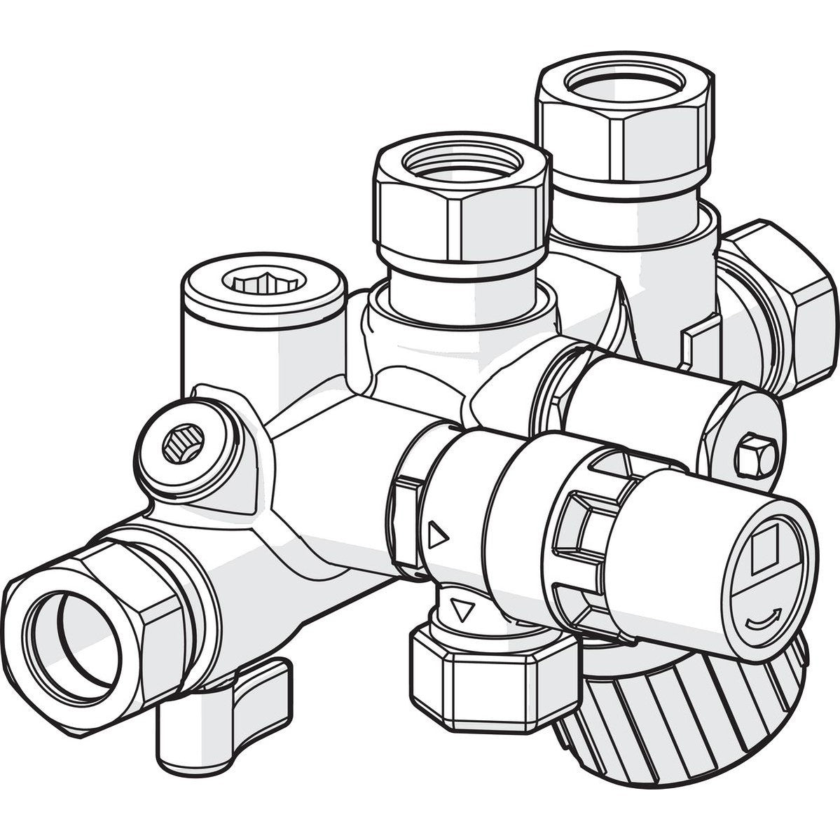 Toiminnot: Sulkuventtiili, tarkistusruuvi, yksisuuntaventtiili, varoventtiili, painemittarin haara, sekoitusventtiili, tyhjennyshana. Rakennepaine 1 MPa (10 bar). Raaka-aine erikoismessinki, sinkinkadonkestävä.Säätöalue +37°C...+65°C. Kumitiivisteet EPDM. Yksisuuntaventtiili jousikuormitteinen.