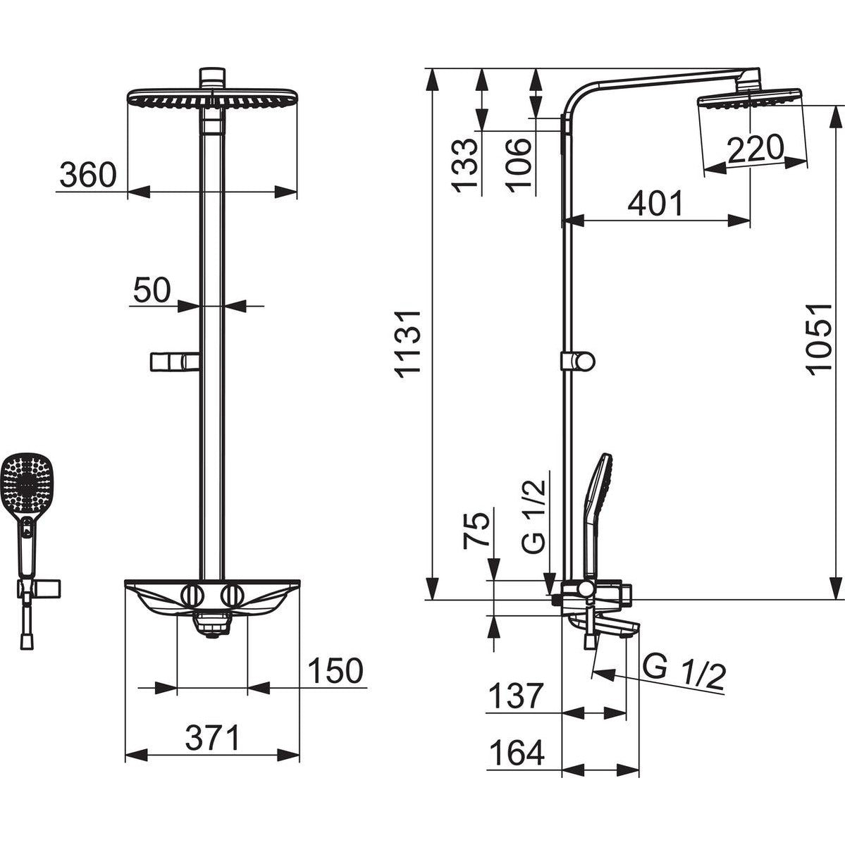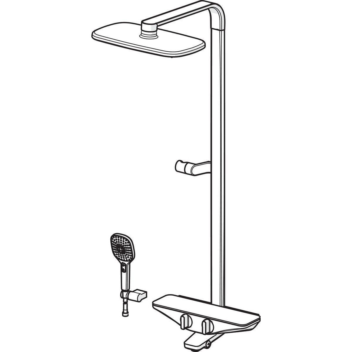 Termostaattinen sadesuihkuhana juoksuputkella. Iso kattosuihku (360 x 220 mm) ja käsisuihku. Hanan päällä tilava, turvalasista tehty hylly. Helppokäyttöiset kahvat ja vaihdin. Lämpötilanrajoitin kahvassa. Oras Hydractiva Style -käsisuihku, jossa kolme toimintoa. Sisältää seinäkiinnikkeen. Hanassa on roskasiivilät ja yksisuuntaventtiilit. Harmaa tai valkoinen.