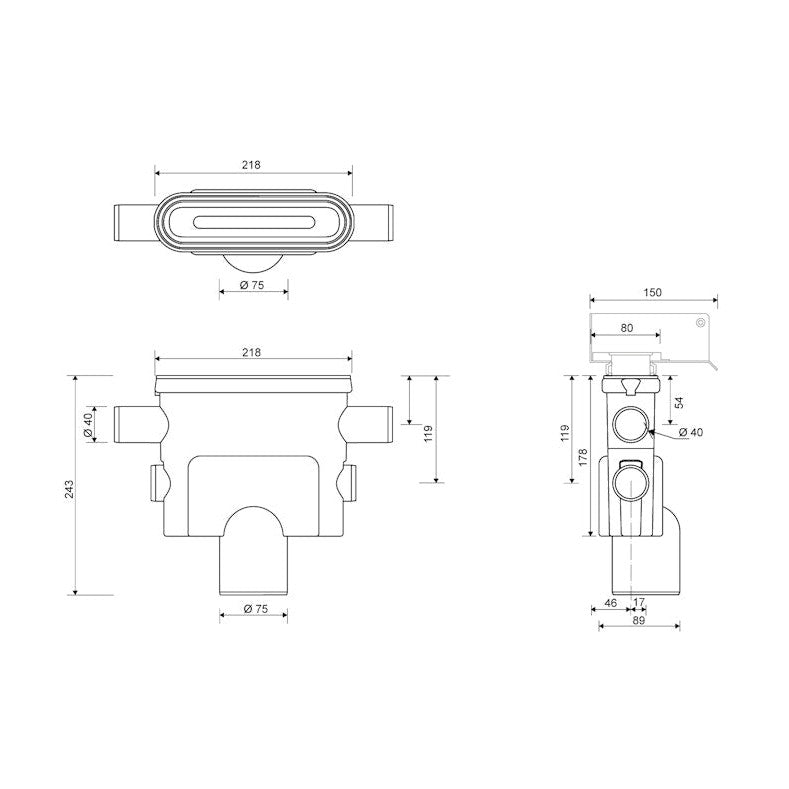 Pystykaivo Unidrain DN 75 1424 sivuliitos 1424.0075 [3308720]