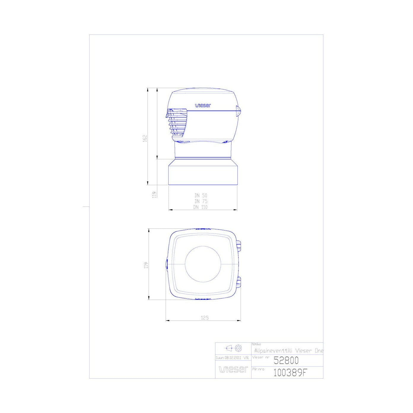Alipaineventtiili Vieser 50-75-110 52800 [4162820]