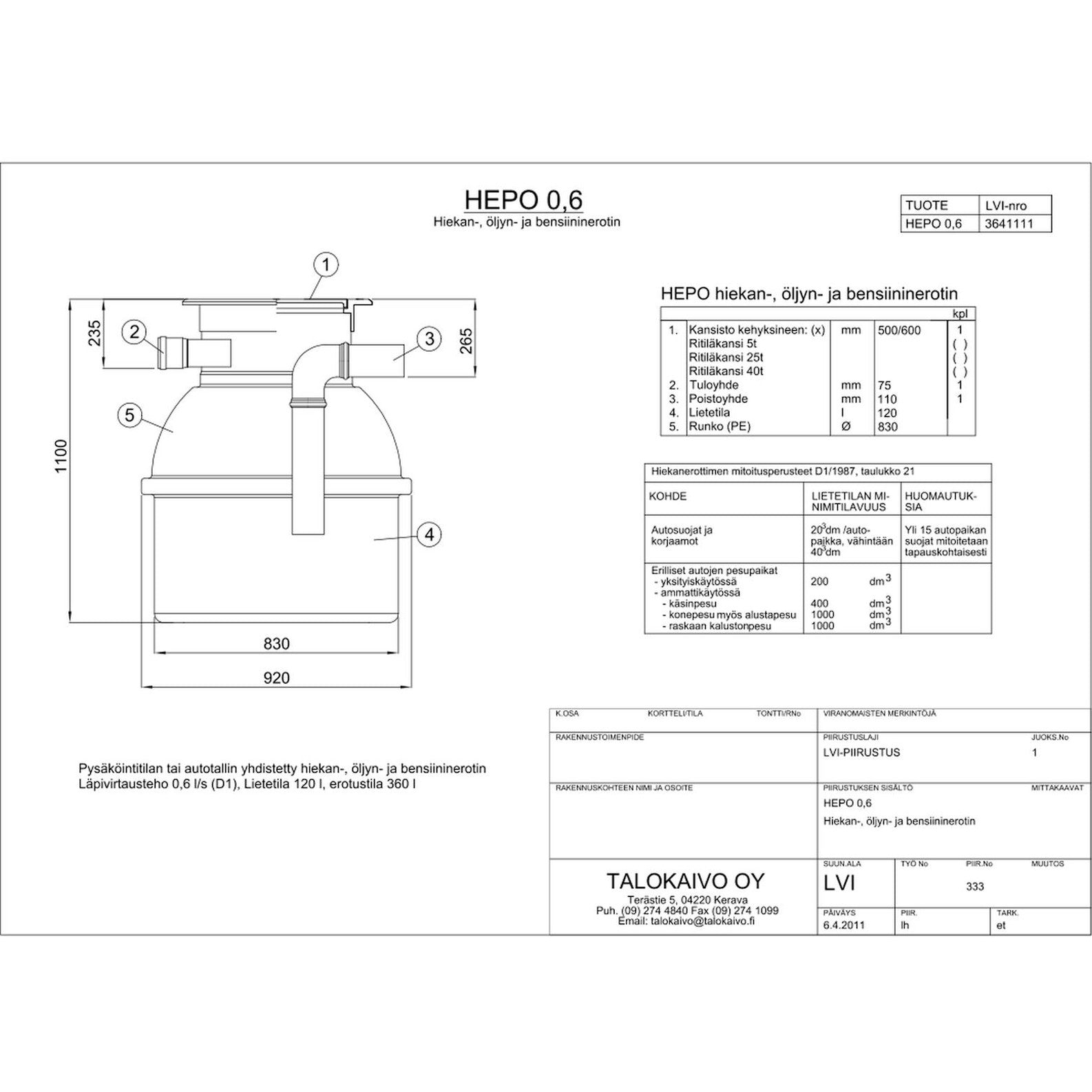 Hiekan- Ja Öljynerotuskaivo Talokaivo Hepo A/06 [3641111]